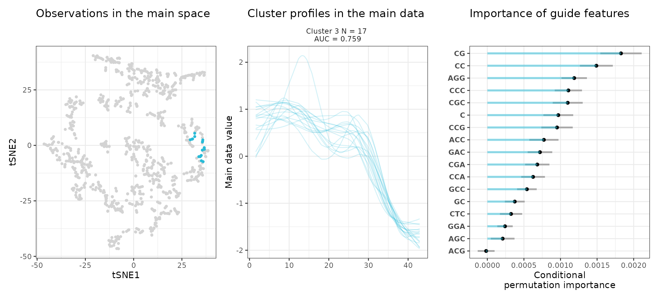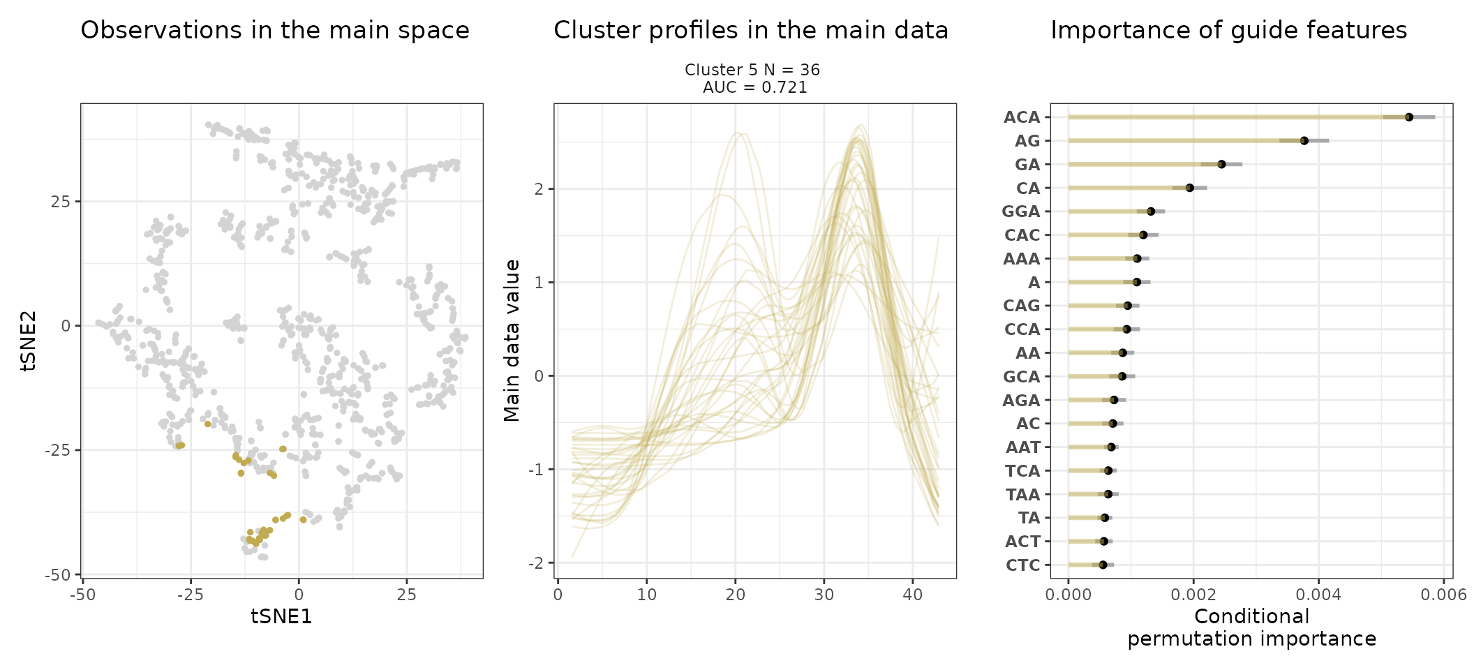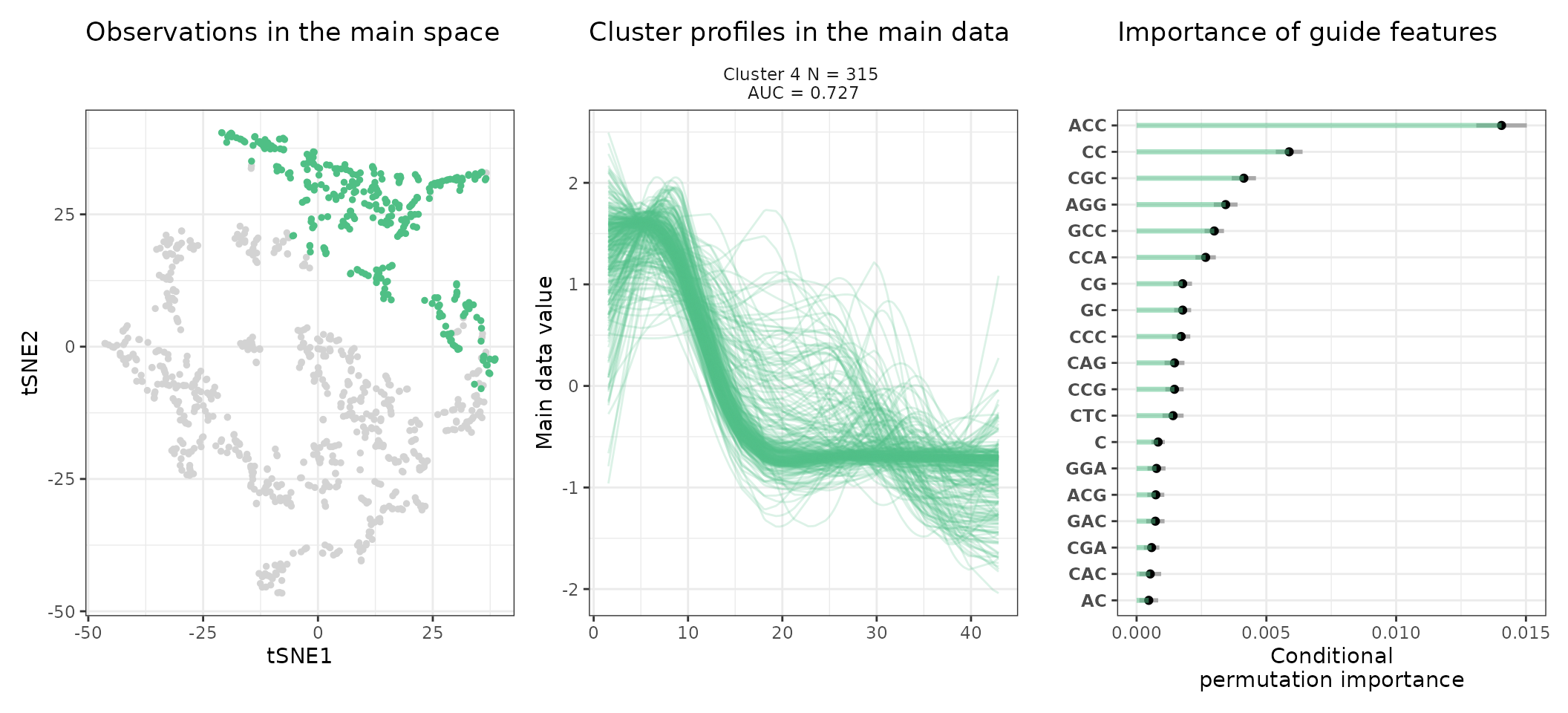 • aucs : a named vector that gives the AUC (classification performance) for each cluster.